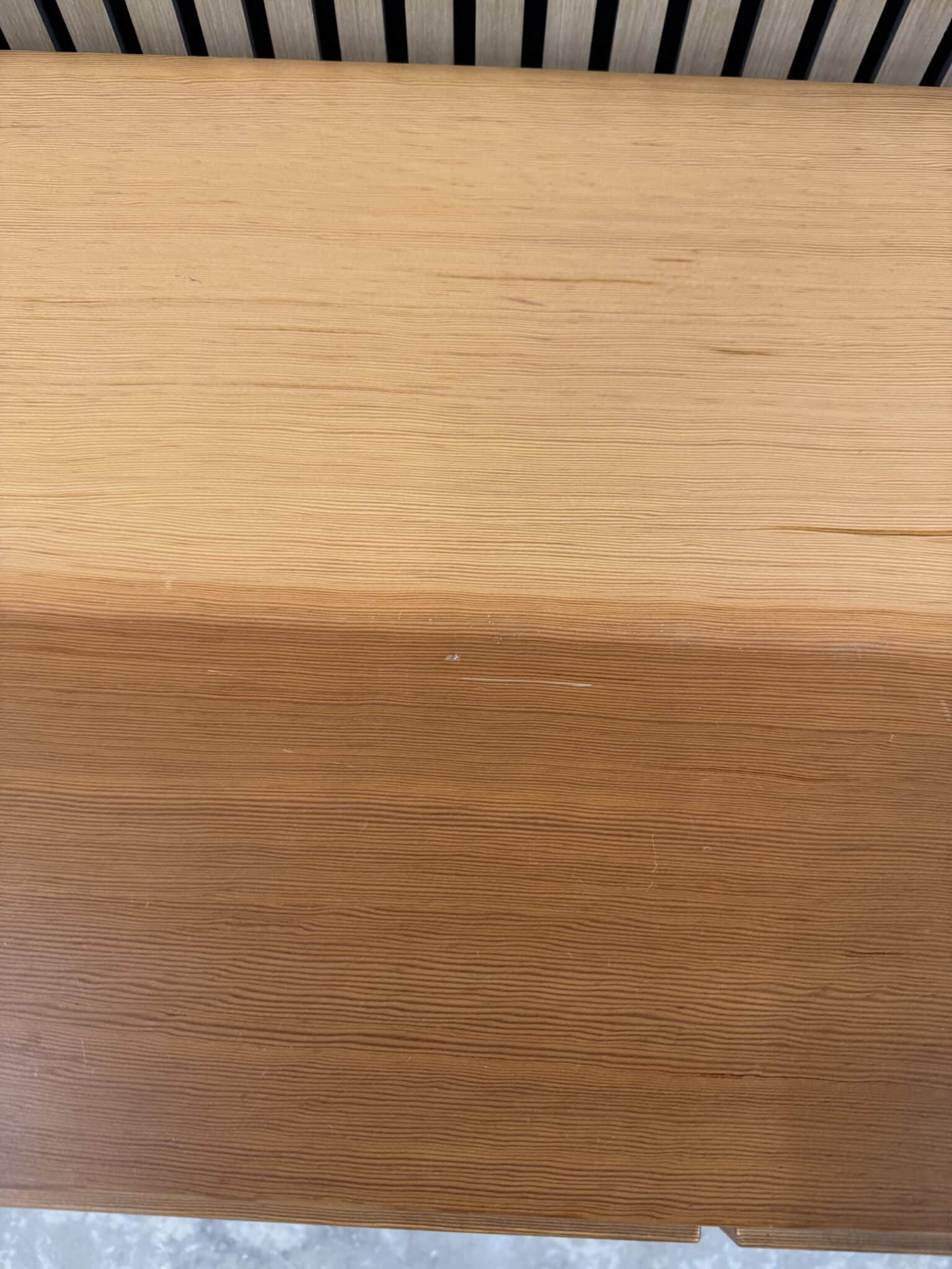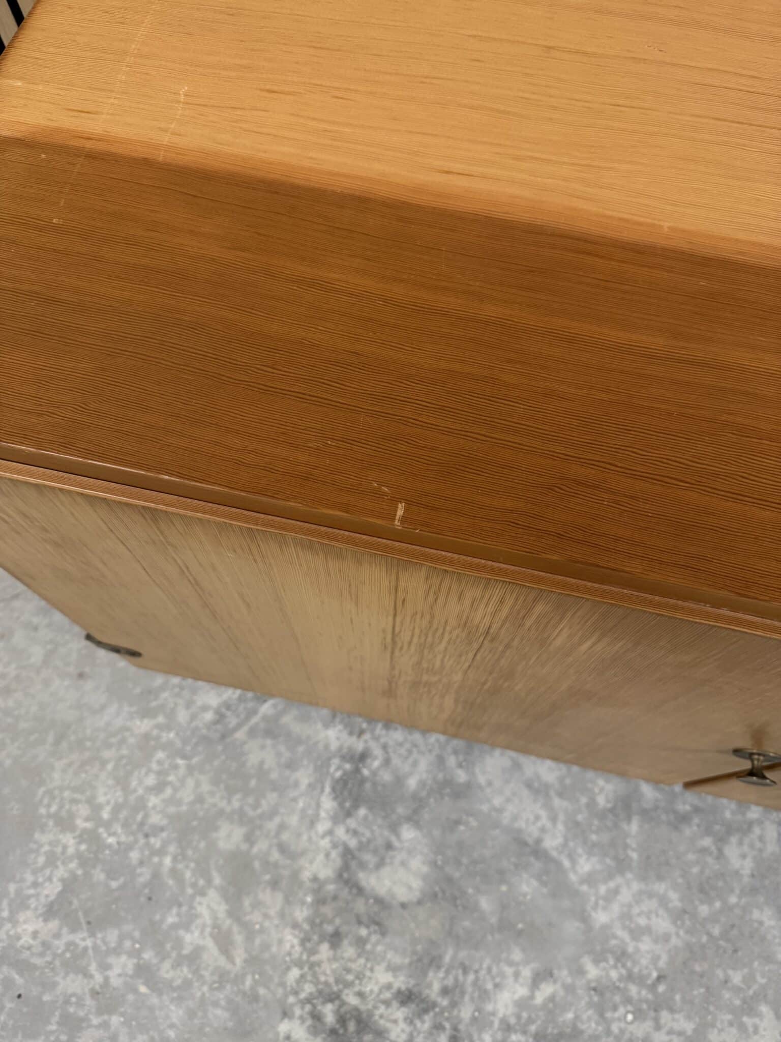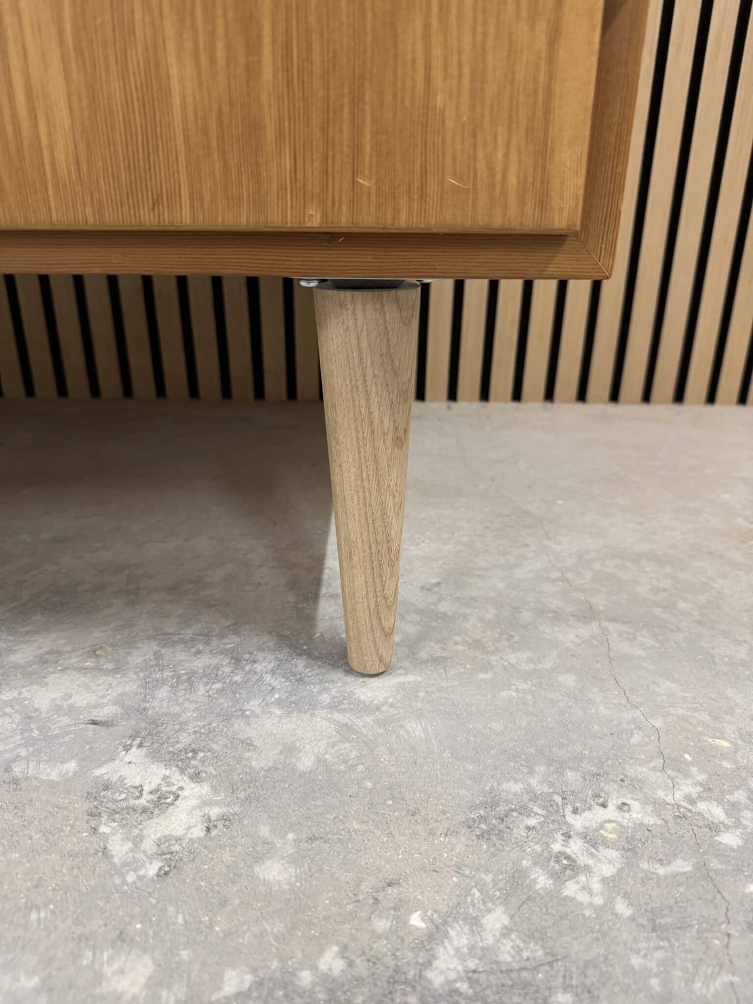 Skænken er produceret i fineret Oregon pine, med eftermonteret ben.