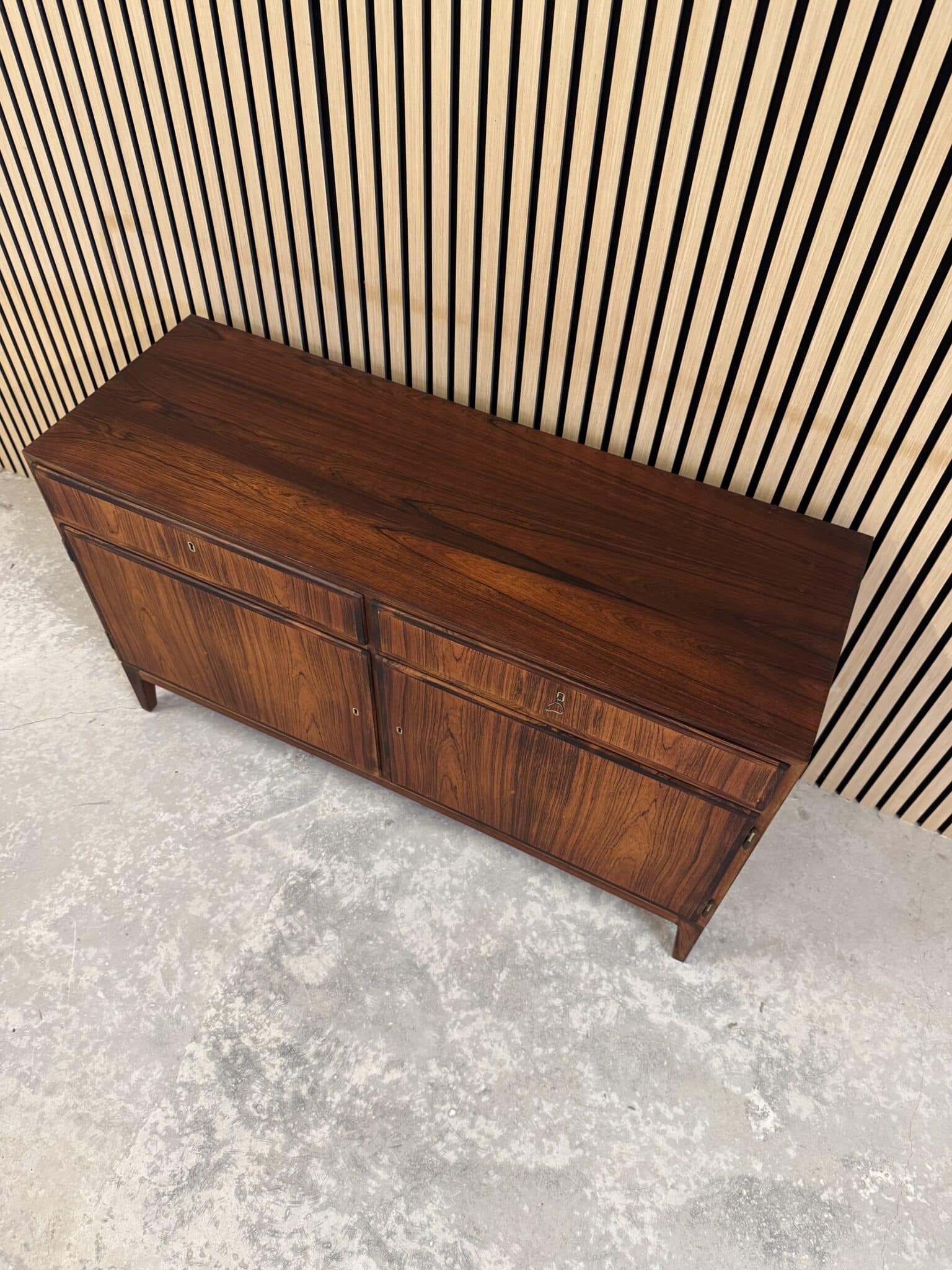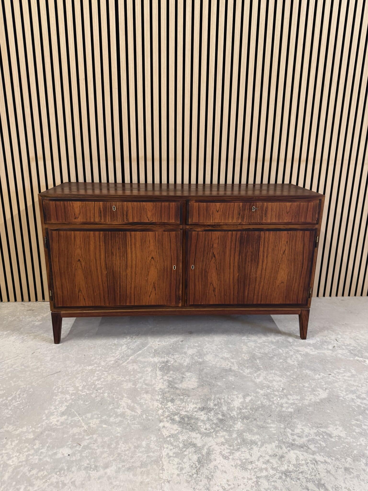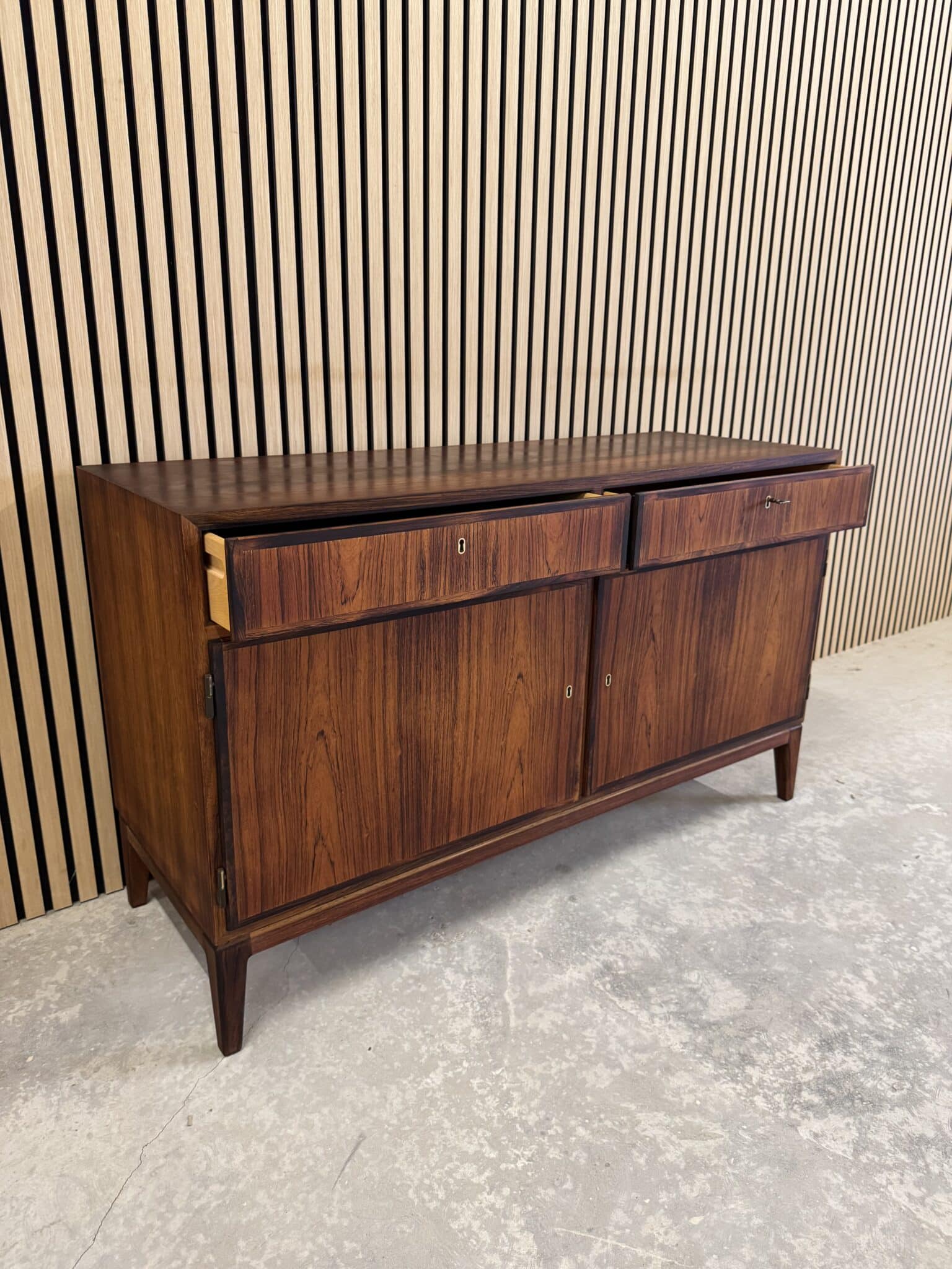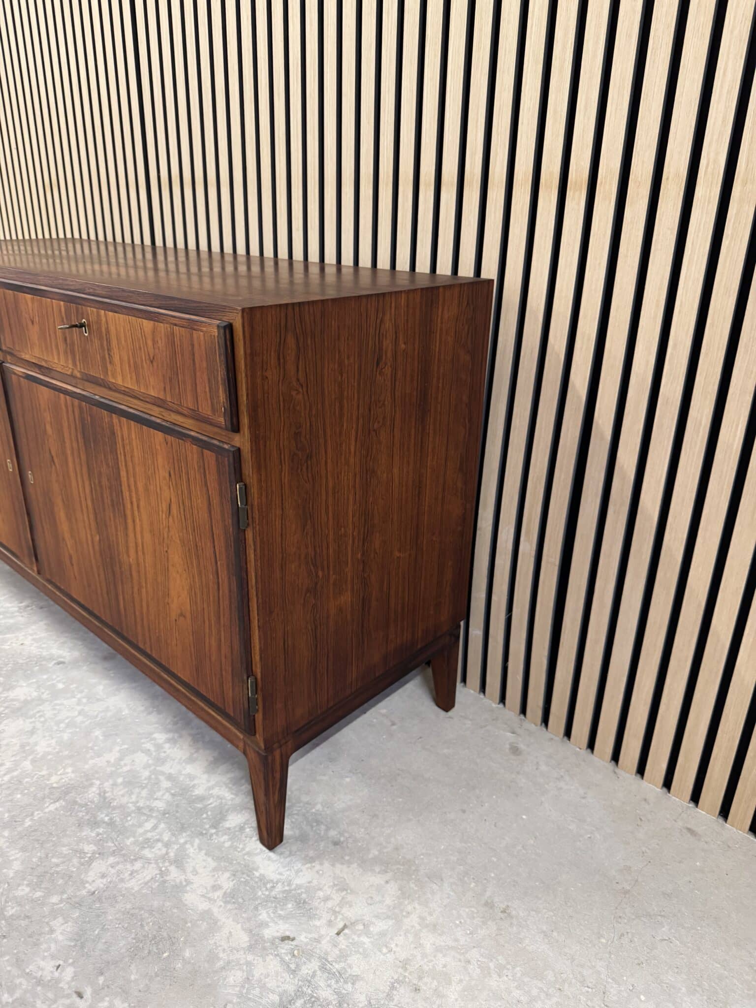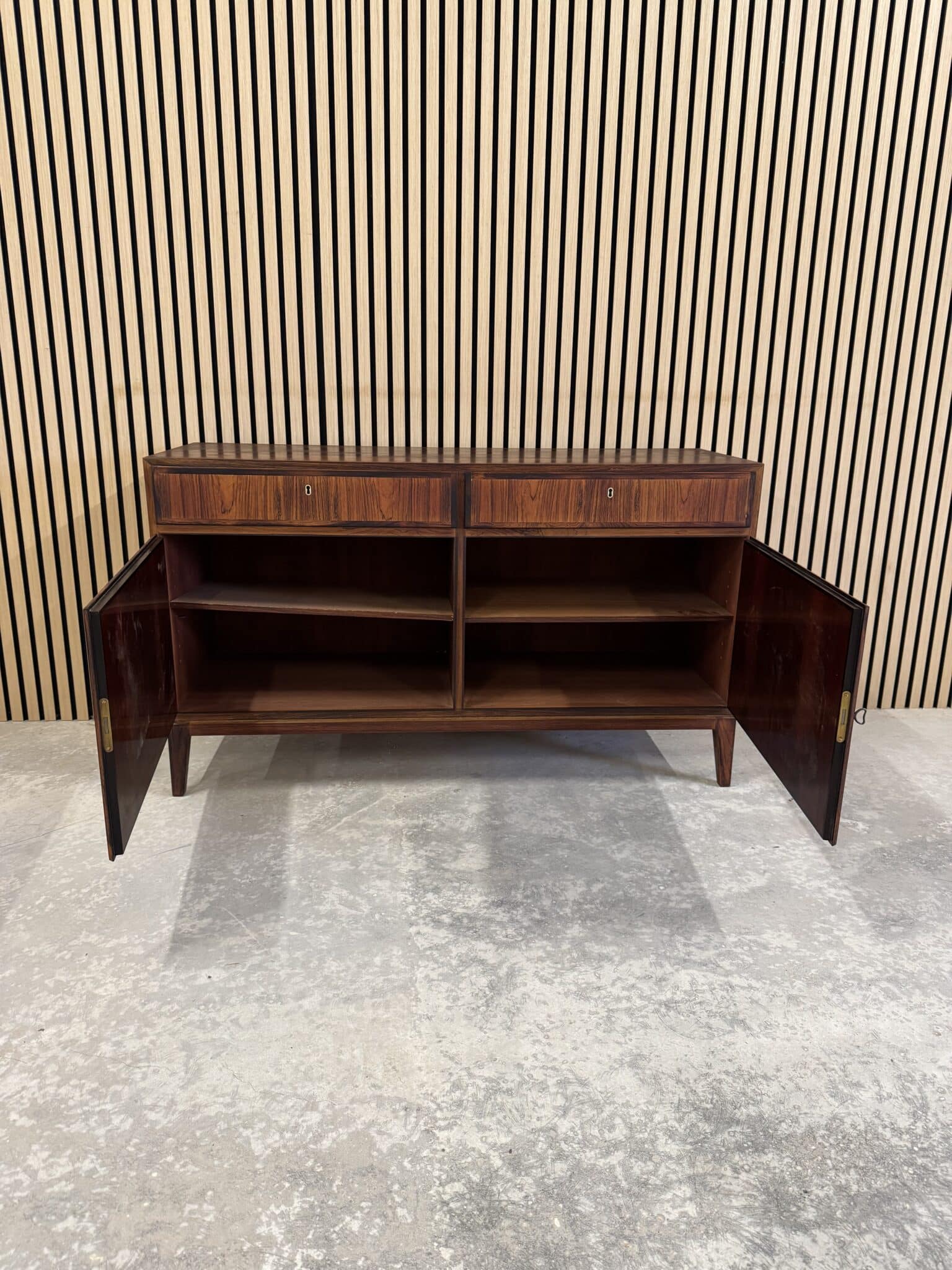 Skænken er produceret i fineret palisander, med originalt stel af palisander.