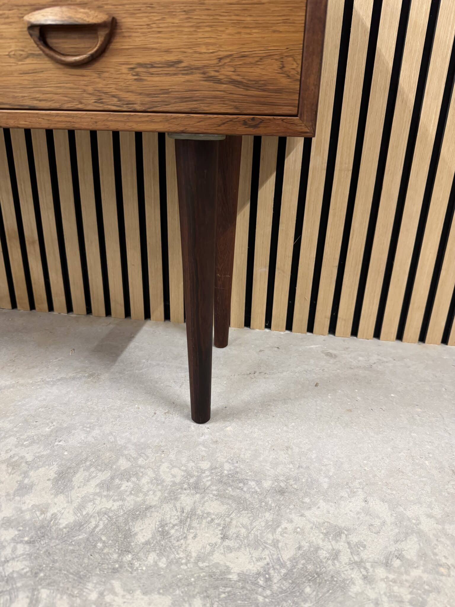 Kommoden er produceret i fineret palisander, med originale ben af massiv palisander.
