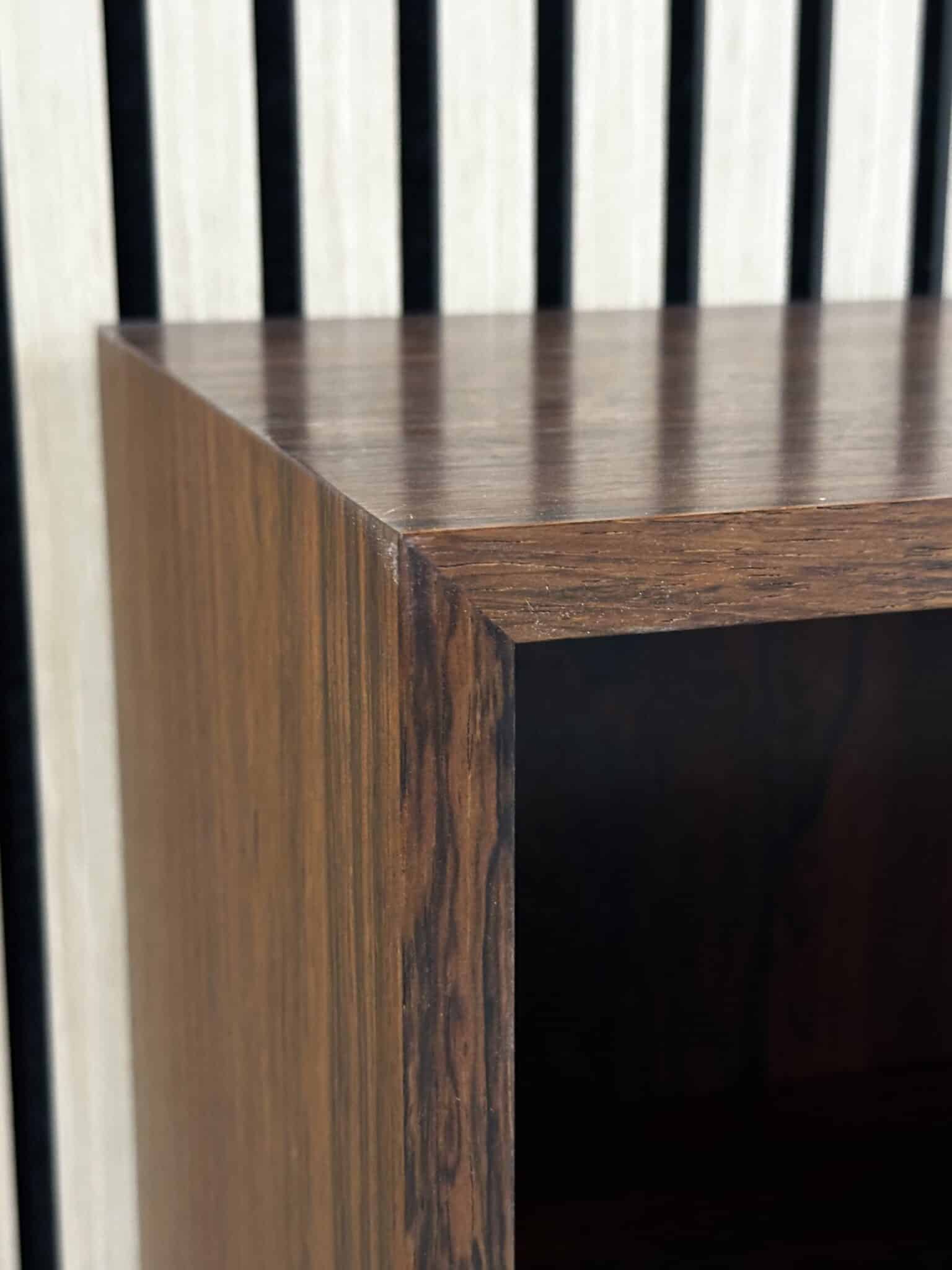 Reolen er produceret i fineret palisander, med eftermonteret ben.
