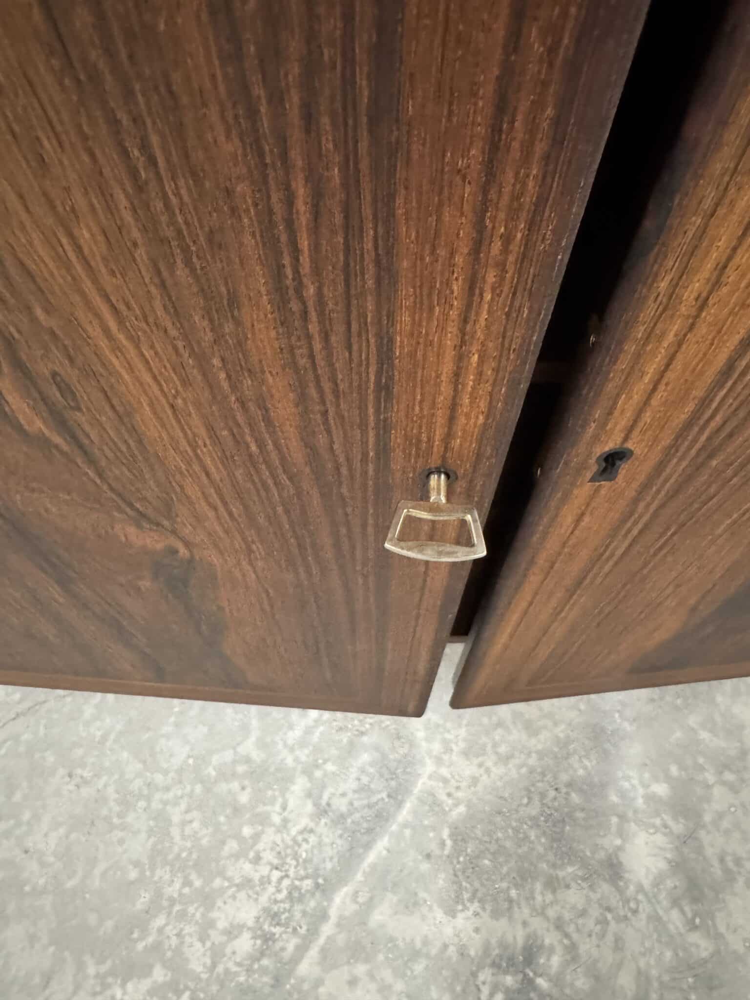 Skænken er produceret i fineret palisander, med eftermonteret ben.