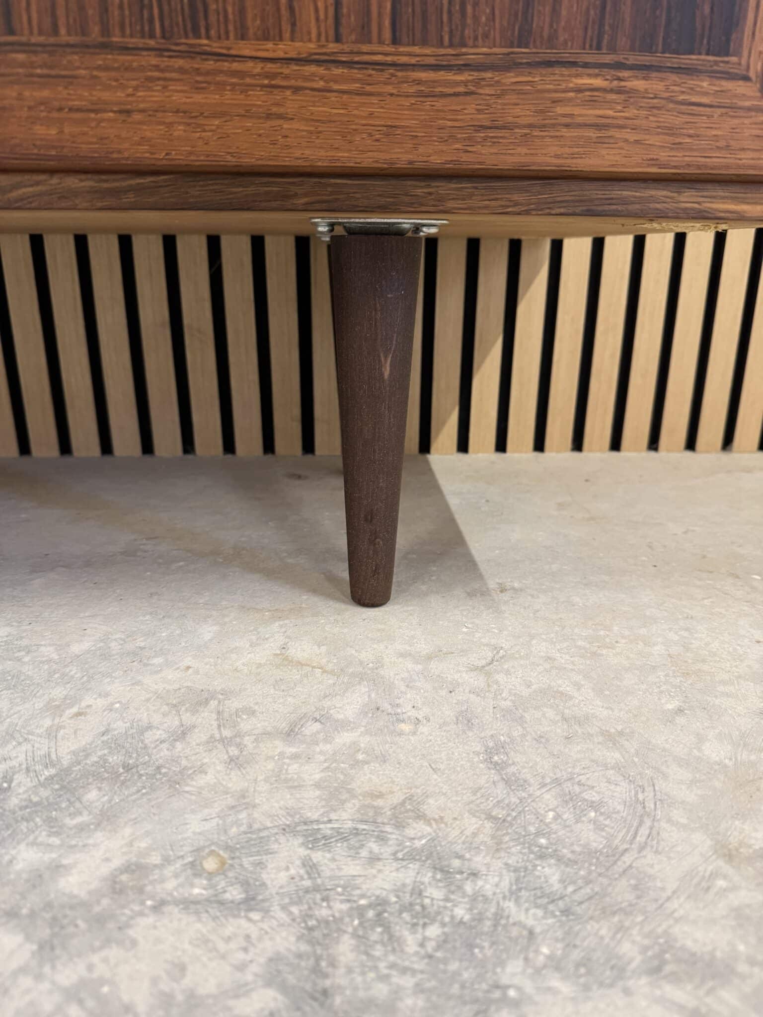 Skænken er produceret i fineret palisander, med eftermonteret ben.