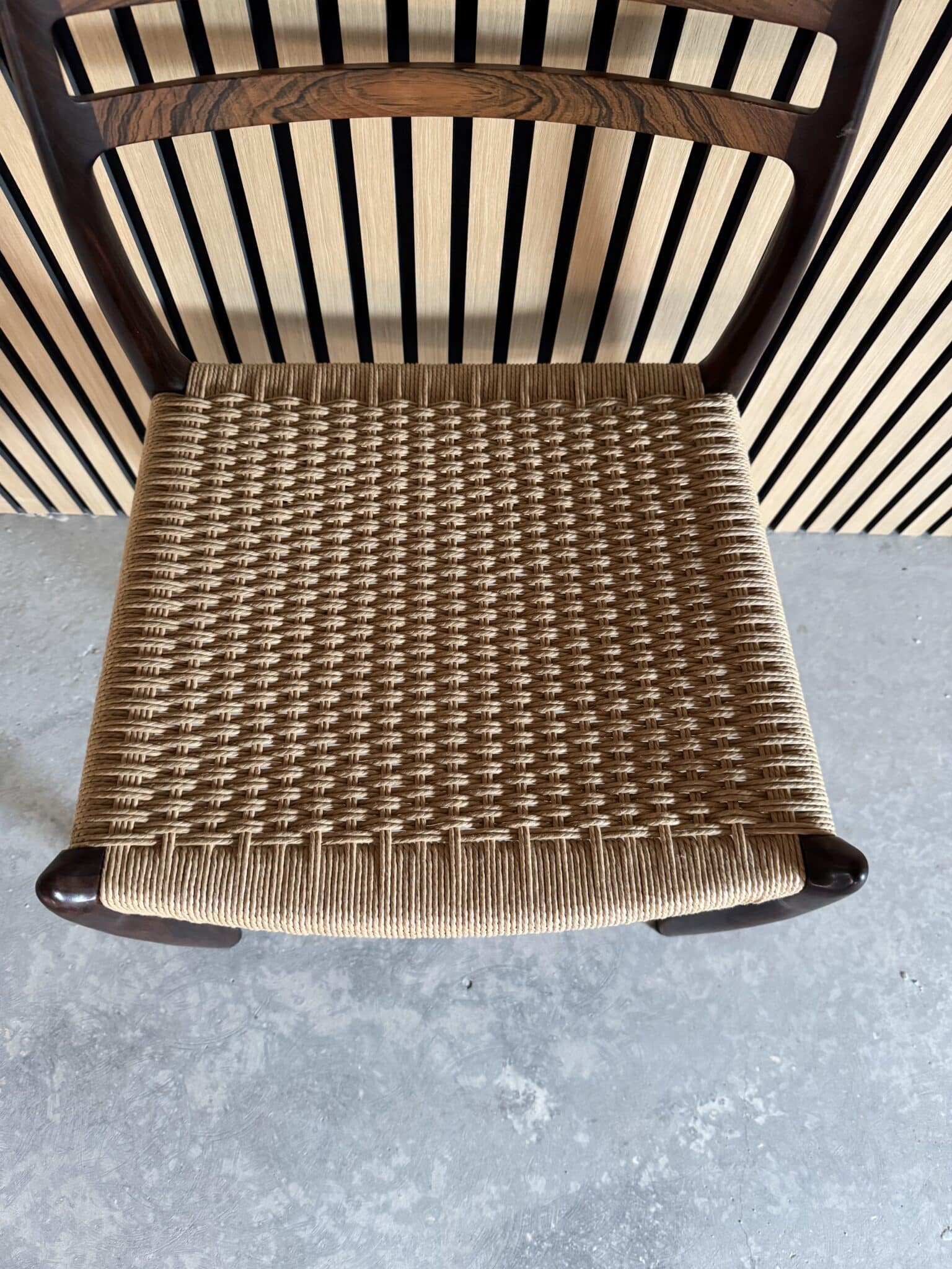 Spisestolen er produceret i massiv palisander, med flettet sæde.