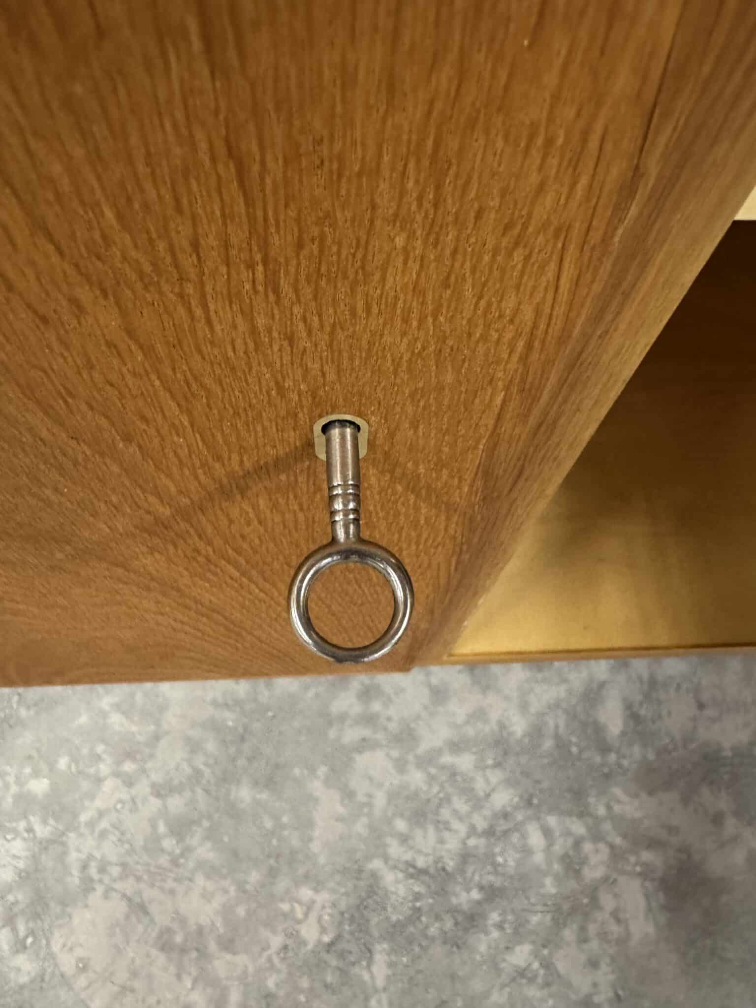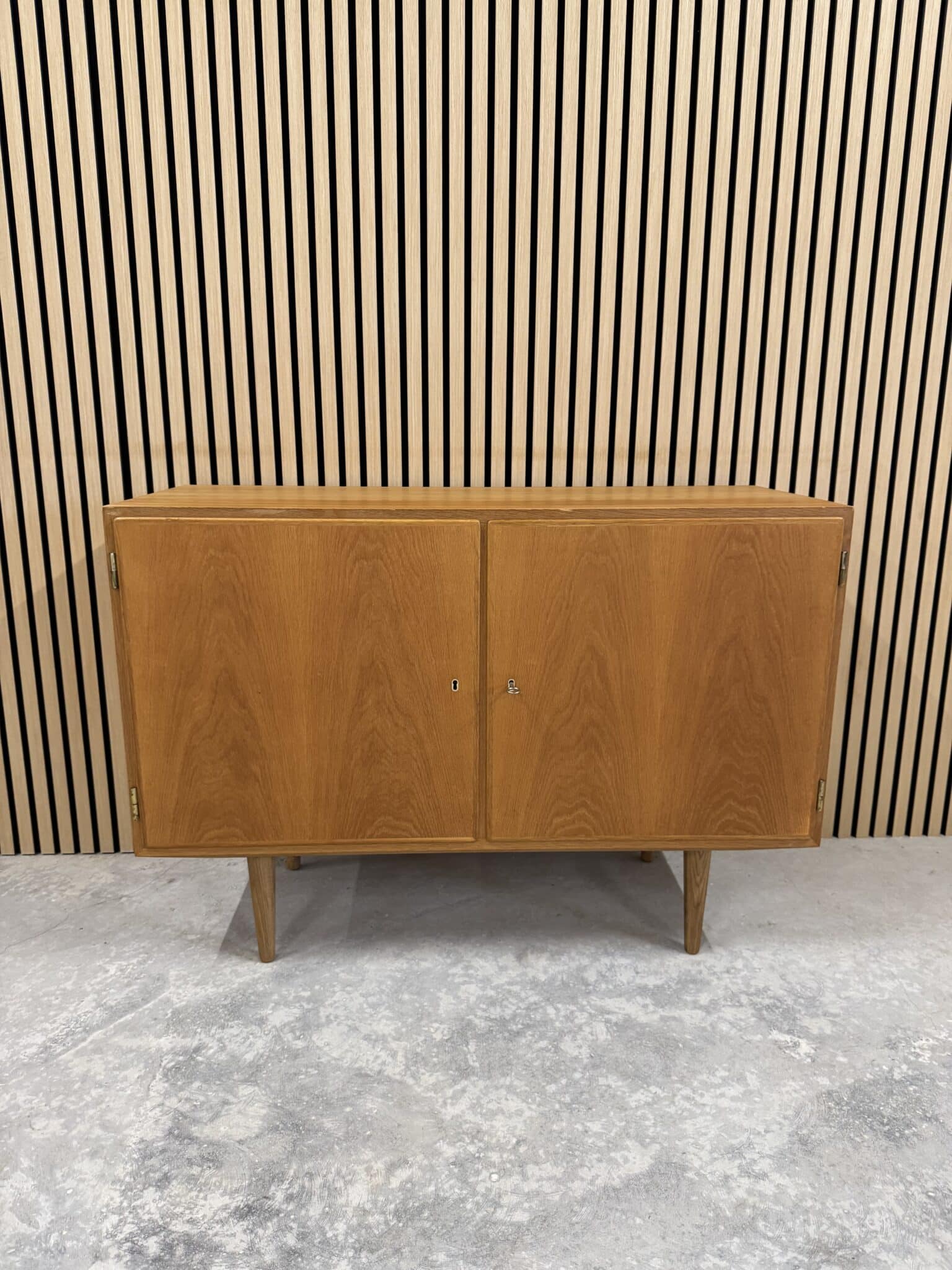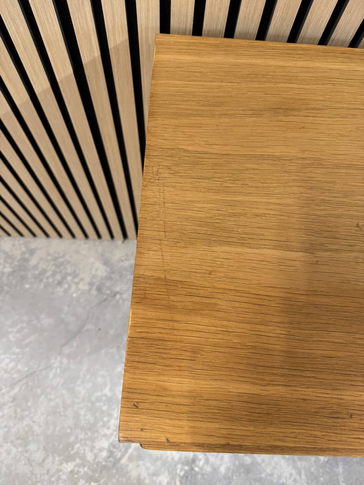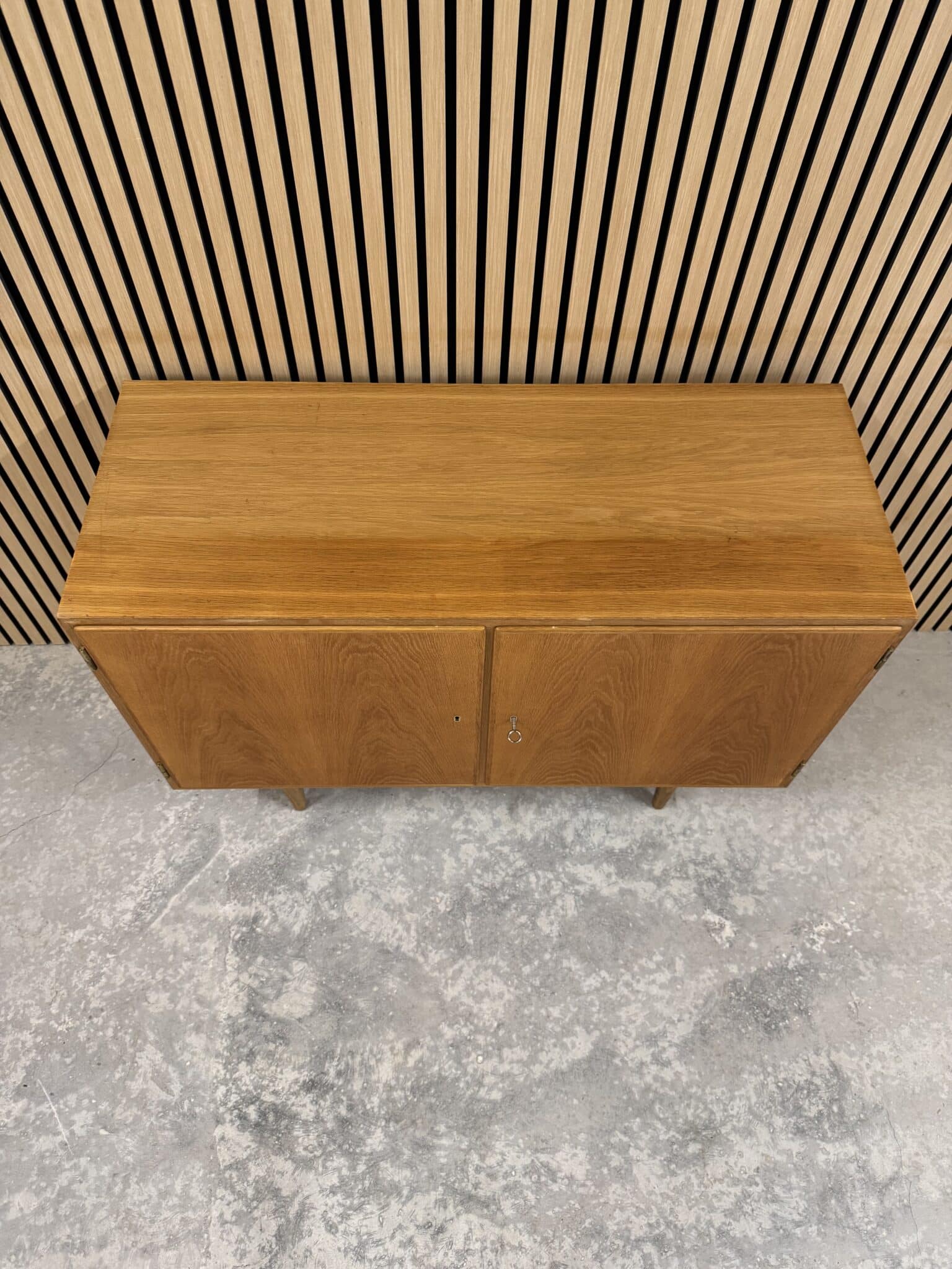 Skænken er produceret i Fineret egetræ, med eftermonteret ben.
