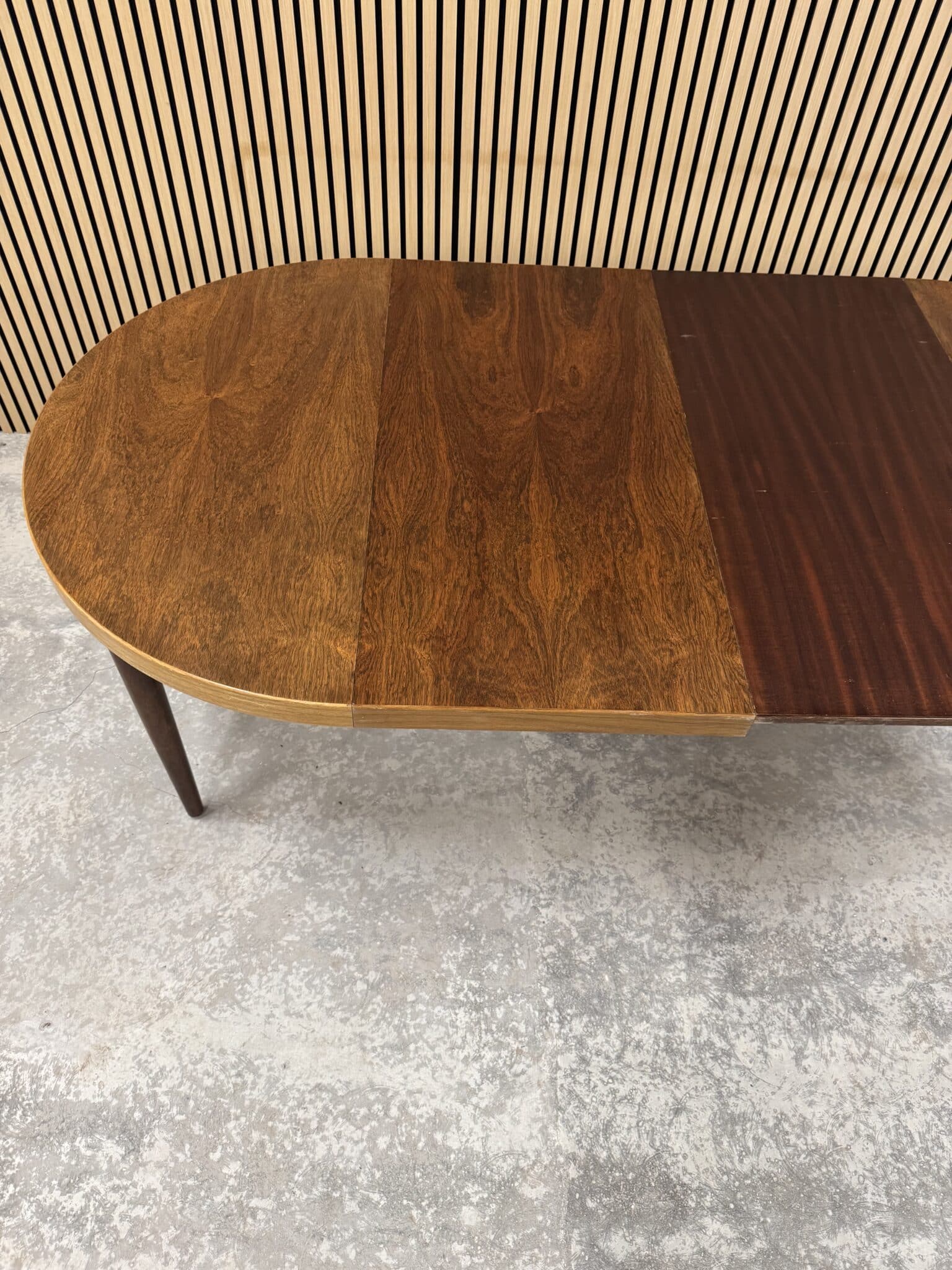 Spisebordet er produceret i fineret palisander, med 2 tillægsplader.